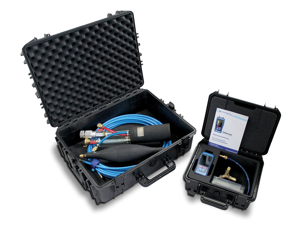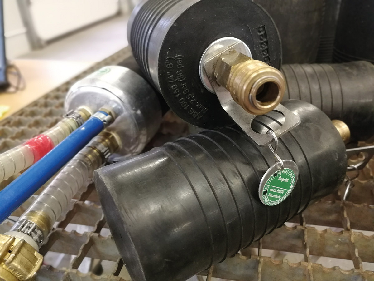 Professionelle Prüfung von Absperrblasen und Rohrdichtkissen. Gebrauchsmusterschutz durch deutsches Patentamt erteilt. Made in Germany.